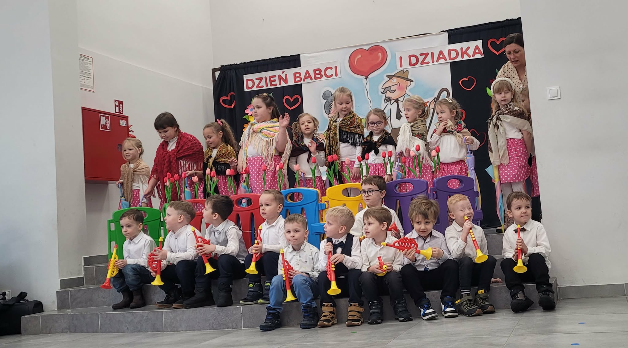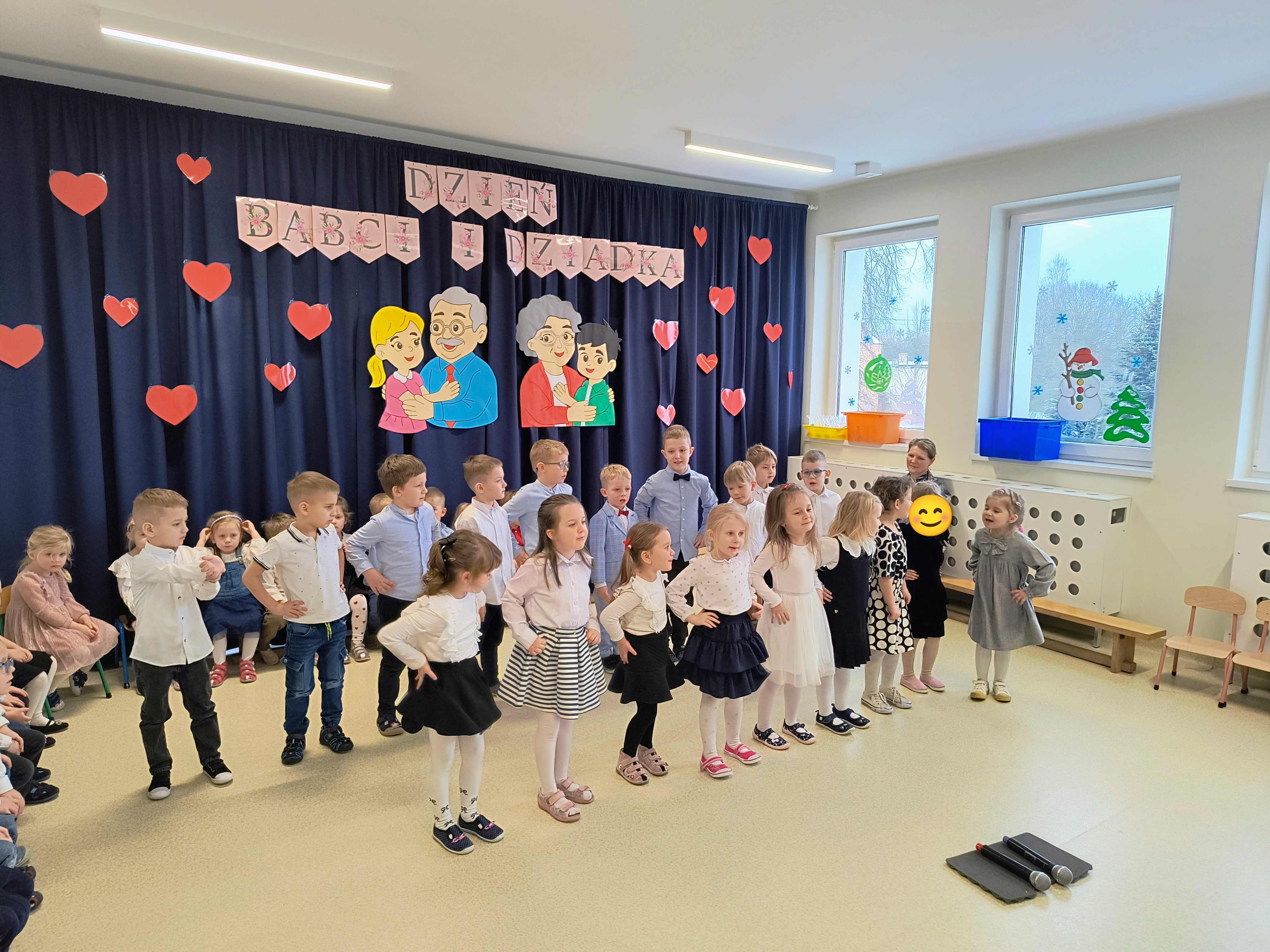 Dzieci z Łaznowa z ogromnym zaangażowaniem przygotowały występy artystyczne z okazji Dnia Babci i Dziadka. Mali artyści zaprezentowali swoje talenty, wywołując wiele uśmiechów i wzruszeń wśród zaproszonych gości. Po występach czekał słodki poczęstunek oraz wspólna zabawa w tematycznych kącikach: fryzjerskim, ogrodniczym i fotograficznym. Był to wyjątkowy czas pełen radości, bliskości i niezapomnianych chwil spędzonych razem.